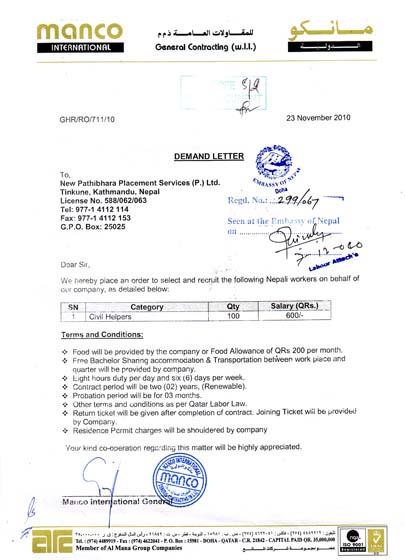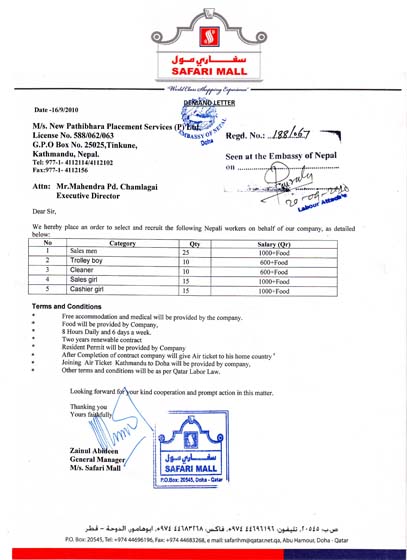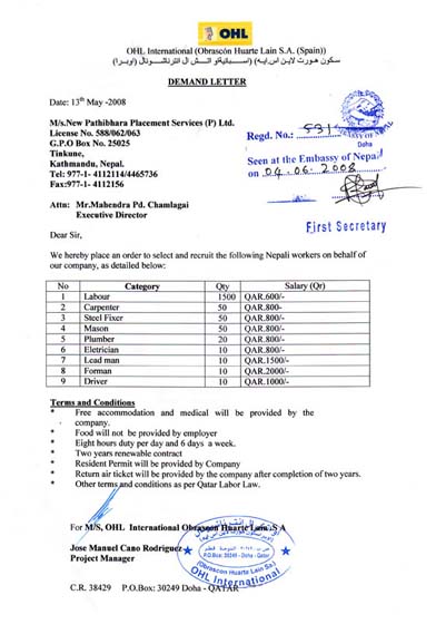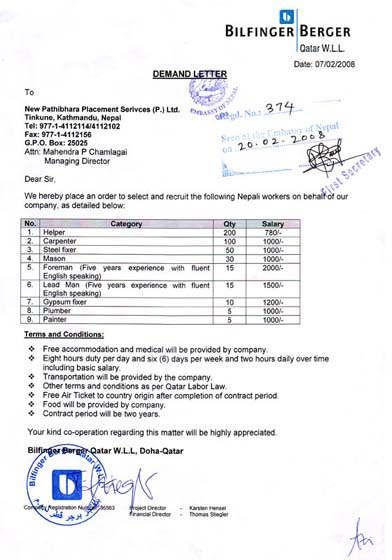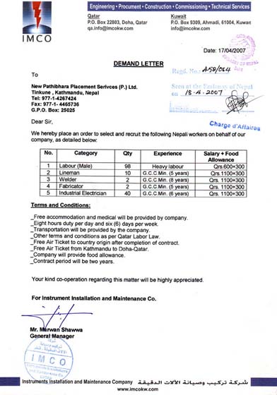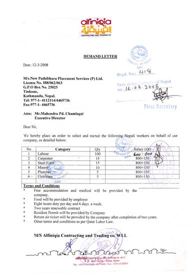 - Negotiate for better positions for Nepalese workers in the country importing Nepalese workforce.