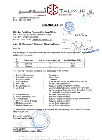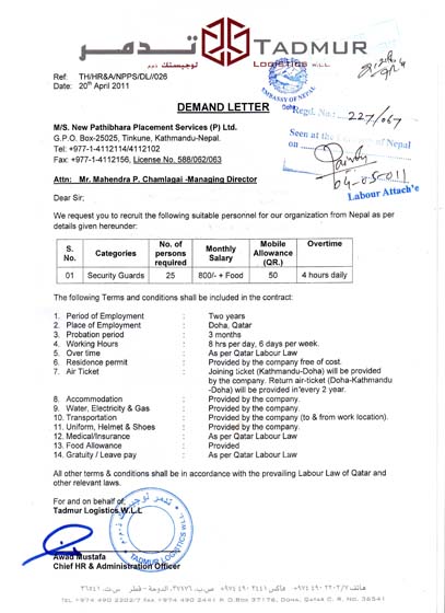 Today I am delighted to present this informative website to you so that you all can be familiar with our services and facilities. So if you are in need of manpower recruitment from Nepal, feel easy & love to contact us and let us be at your service. We will do our best to make you satisfied.