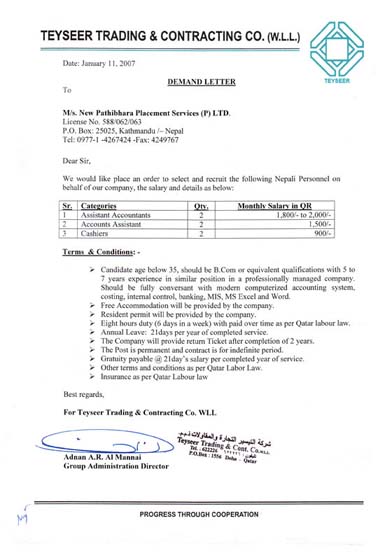 With hard work, dedication, sense of selfless service and high-spirited team, we’ll make a drastic change in Nepalese manpower recruitment industry. Recently we are recruiting people to Qatar and UAE a that is why we are proud to be associated with the development of this country and our mission is still on connecting with other countries